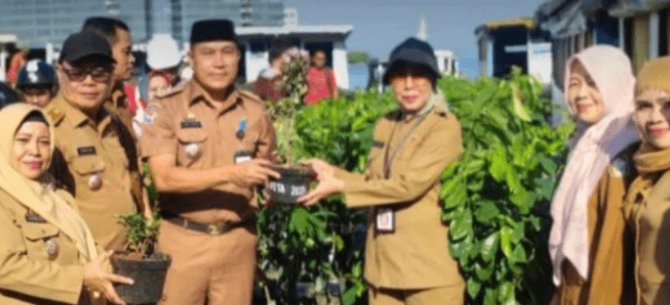 Bibit tanaman diserahkan langsung oleh Kepala Dinas Pertanian dan Perikanan Kota Makassar di Dermaga Kayu Bangkoa pada Selasa (23/07/2024).