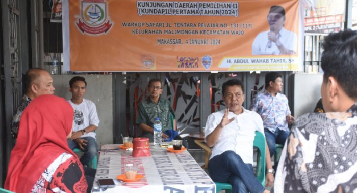 KABARBAIK.NEWS —- Anggota DPRD Kota Makassar, Abdul Wahab Tahir melakukan agenda kunjungan daerah pemilihan (Kundapil) di Kelurahan Kaluku Bodoa, Kecamatan Tallo, Makassar, Kamis (4/1/2024).