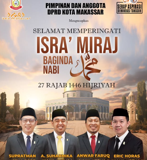 Isra Mi’raj, yang dikenal sebagai perjalanan spiritual Nabi Muhammad SAW, menjadi bukti nyata kasih sayang Allah yang tiada batas bagi umat-Nya. Di hari yang penuh berkah ini, Pimpinan dan Anggota DPRD Kota Makassar mengajak seluruh warga untuk merenungkan makna pentingnya peristiwa tersebut, serta memperbaiki dan meningkatkan amal ibadah, terutama bagi warga Kota Makassar.