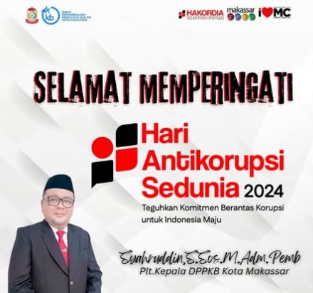 KABARBAIK.NEWS – PLT Kepala Dinas Pemberdayaan Perempuan, Perlindungan Anak, dan Keluarga Berencana (PPKB) Kota Makassar, Syahruddin, S.Sos., M.Adm.Pemb, mengajak masyarakat untuk bersama-sama meneguhkan komitmen dalam upaya pemberantasan korupsi.