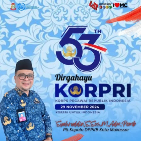 KABARBAIK.NEWS – – Plt. Kepala Dinas Pemberdayaan Perempuan dan Keluarga Berencana (PPKB) Kota Makassar, Syahruddin mengucapkan selamat ulang tahun yang ke-53 kepada Korps Pegawai Republik Indonesia (Korpri).