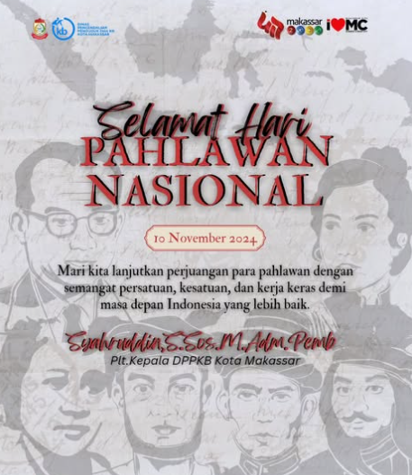 KABARBAIK.NEWS – Kepala Dinas Pemberdayaan Perempuan, Perlindungan Anak, dan Keluarga Berencana (PPKB) Kota Makassar, mengucapkan selamat Hari Pahlawan Nasional. Dalam kesempatan ini, beliau mengajak seluruh masyarakat untuk melanjutkan perjuangan para pahlawan dengan semangat persatuan, kesatuan, dan kerja keras.