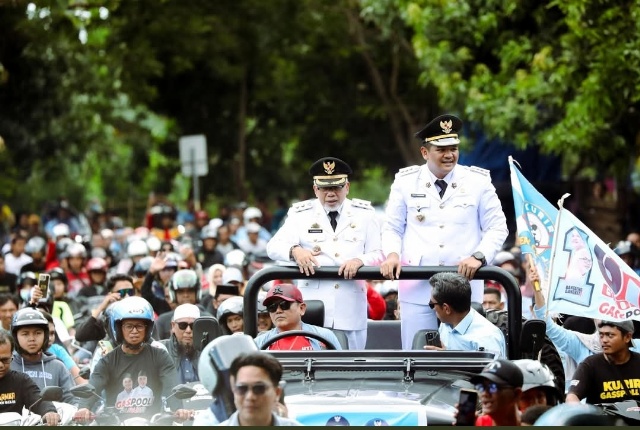 Pasangan kepala daerah ini disambut antusias maysrakat Kabupaten Bantaeng. Tiba di rest area perbatasan Jeneponto – Bantaeng, Uji – Sah menggunakan mobil Jeep terbuka.