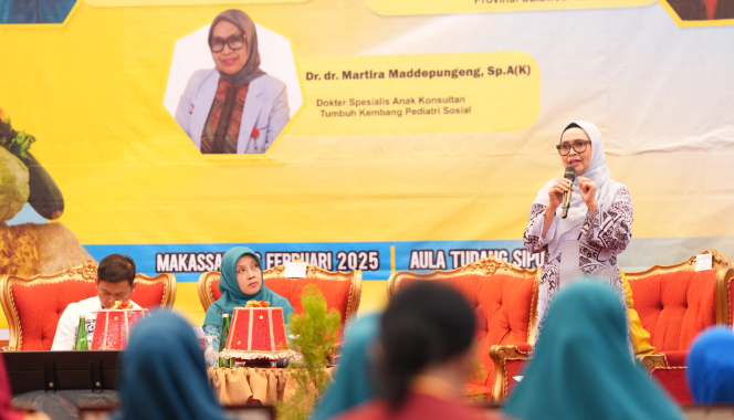 Dalam sambutannya, Pj Ketua TP PKK Sulsel, dr. Andi Indriaty Syaiful, menegaskan pentingnya pencegahan stunting sebagai bagian dari agenda prioritas pemerintah pusat di bawah kepemimpinan Presiden Prabowo Subianto.
